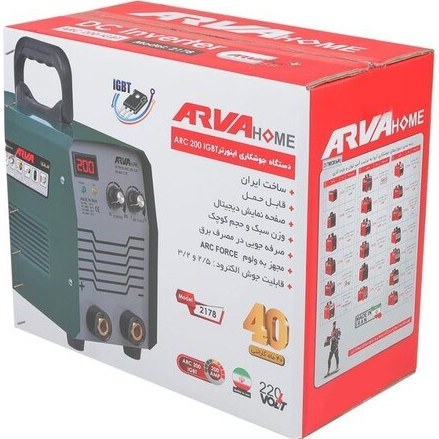 خرید اینورتر جوشکاری ۲۰۰ آمپر آروا هوم مدل ۲۱۷۸ با وزن سبک، فن ۵۵۰۰ دور، نمایشگر دیجیتال و سیستم آنتی استیک. مناسب برای جوشکاری با الکترود ۲.۵ و ۳.۲. گارانتی 40 ماهه.